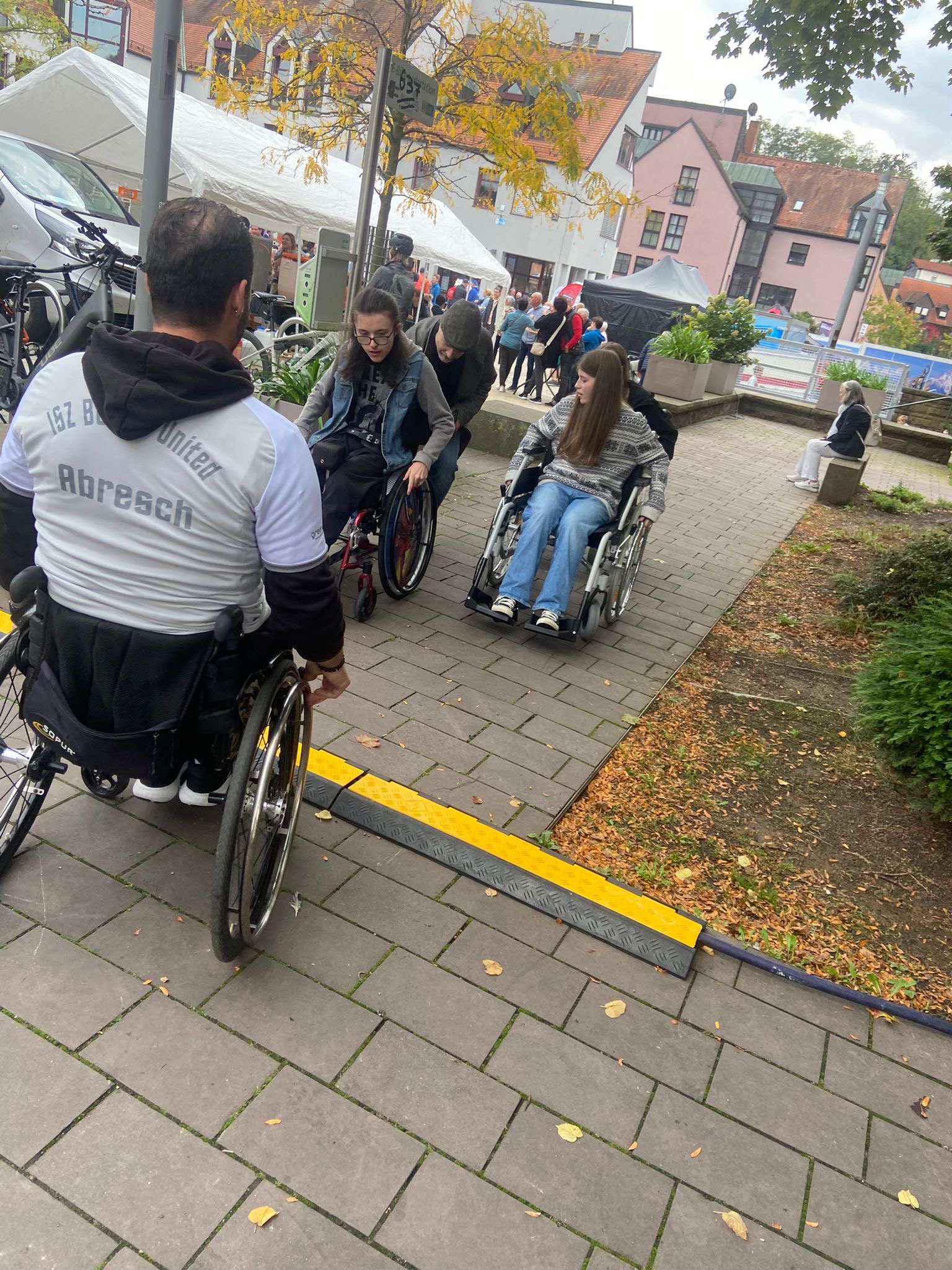 Wir, das Boccia-United-Team des Inklusionssportzentrums Alzenau Rhein-Main e.V., hatten die Gelegenheit, den Menschen Boccia zu zeigen – sowohl im Rollstuhl als auch für Menschen mit Behinderung – und gemeinsam zu spielen. Leider war der Boden draußen nicht so eben wie in der Halle, aber wir haben das alle super gemeistert. Es ging ja vor allem darum, erste Erfahrungen mit Inklusion zu sammeln.